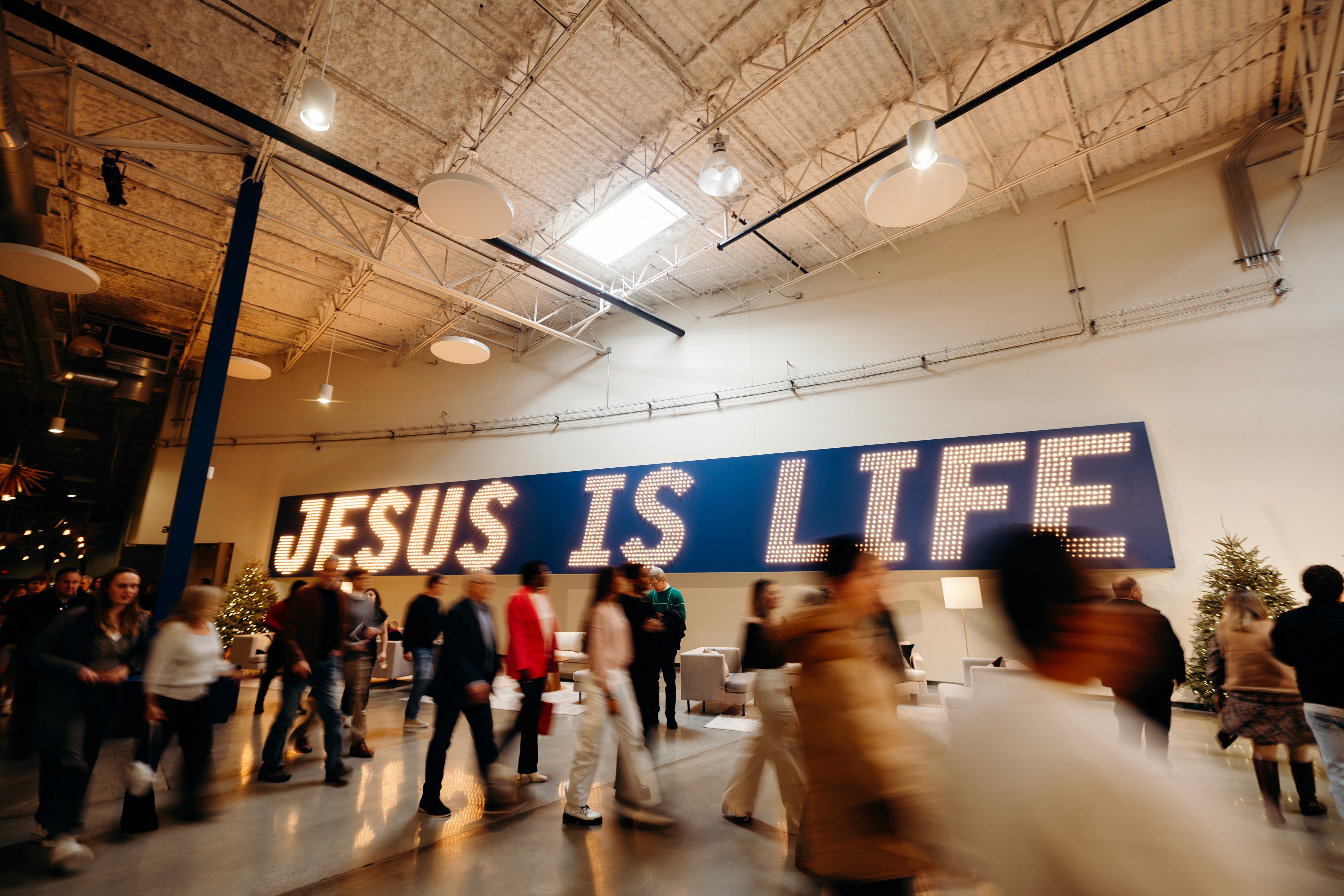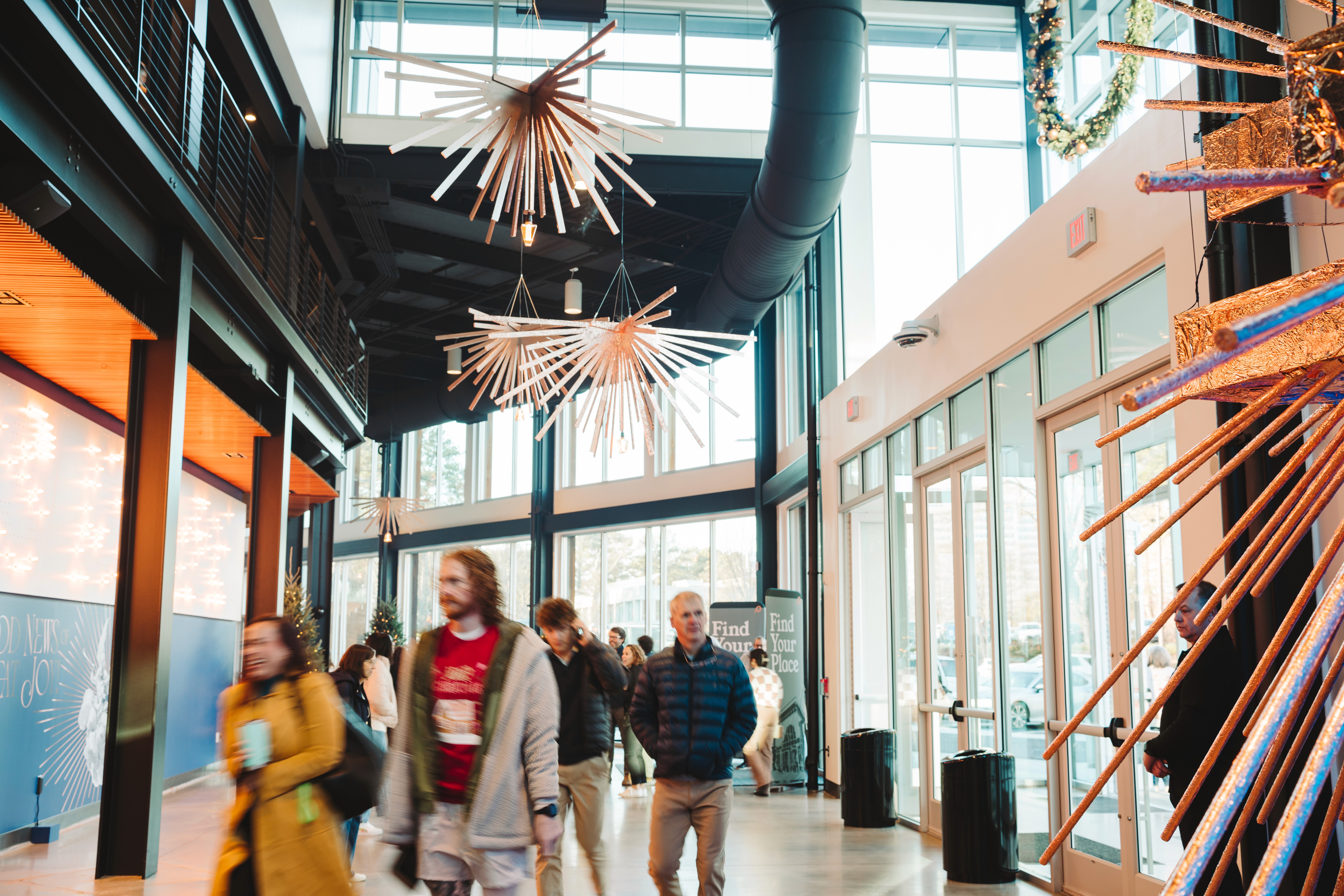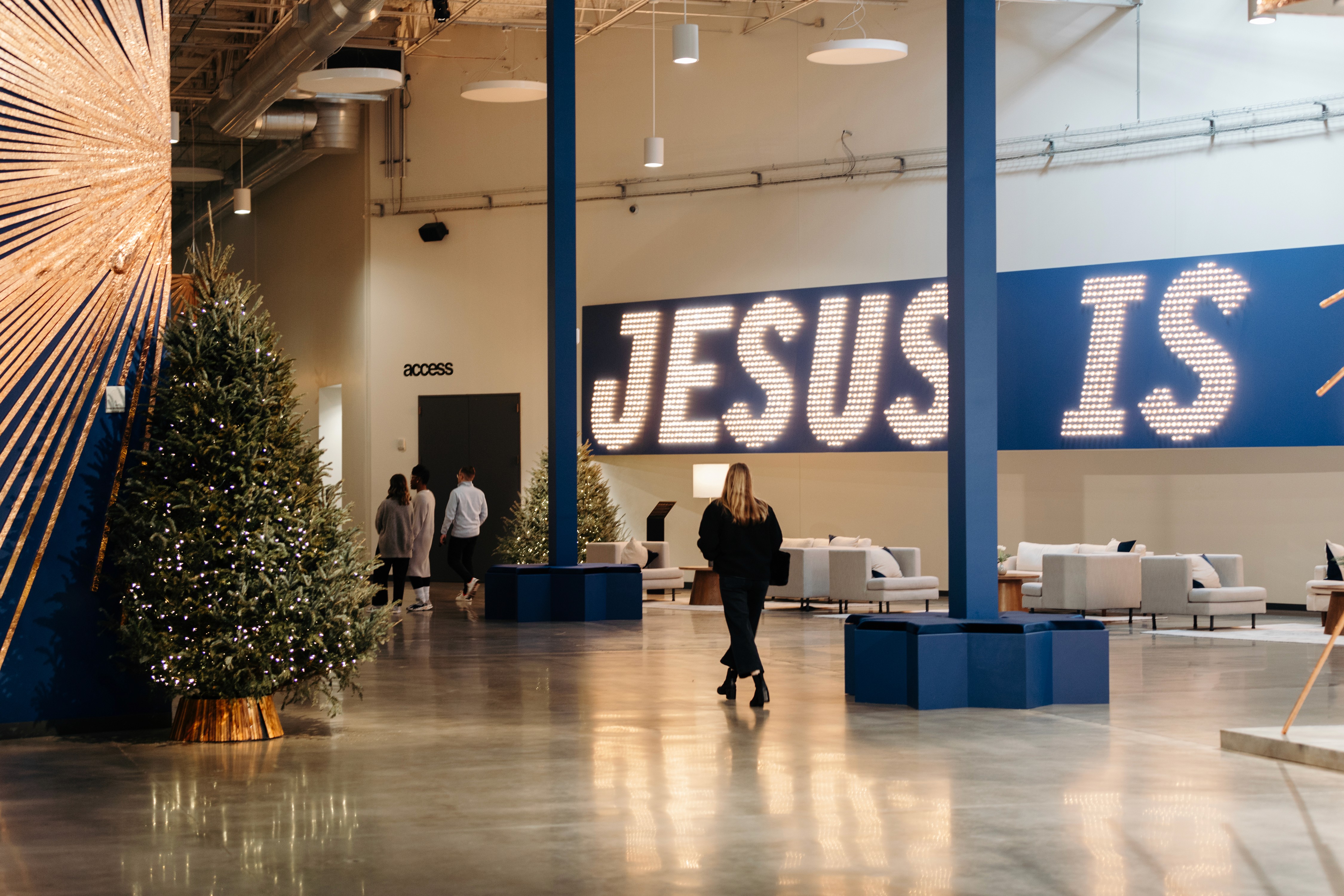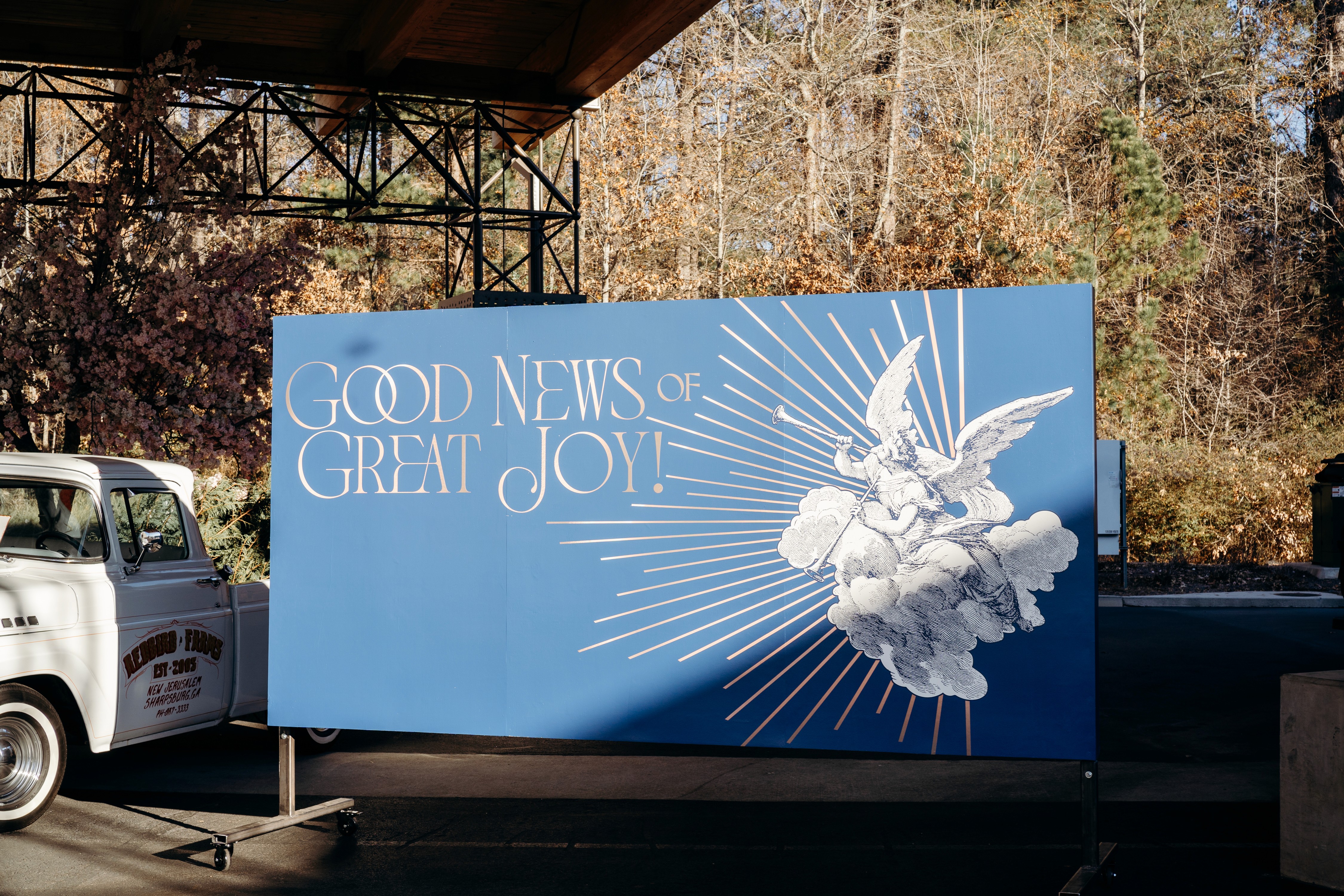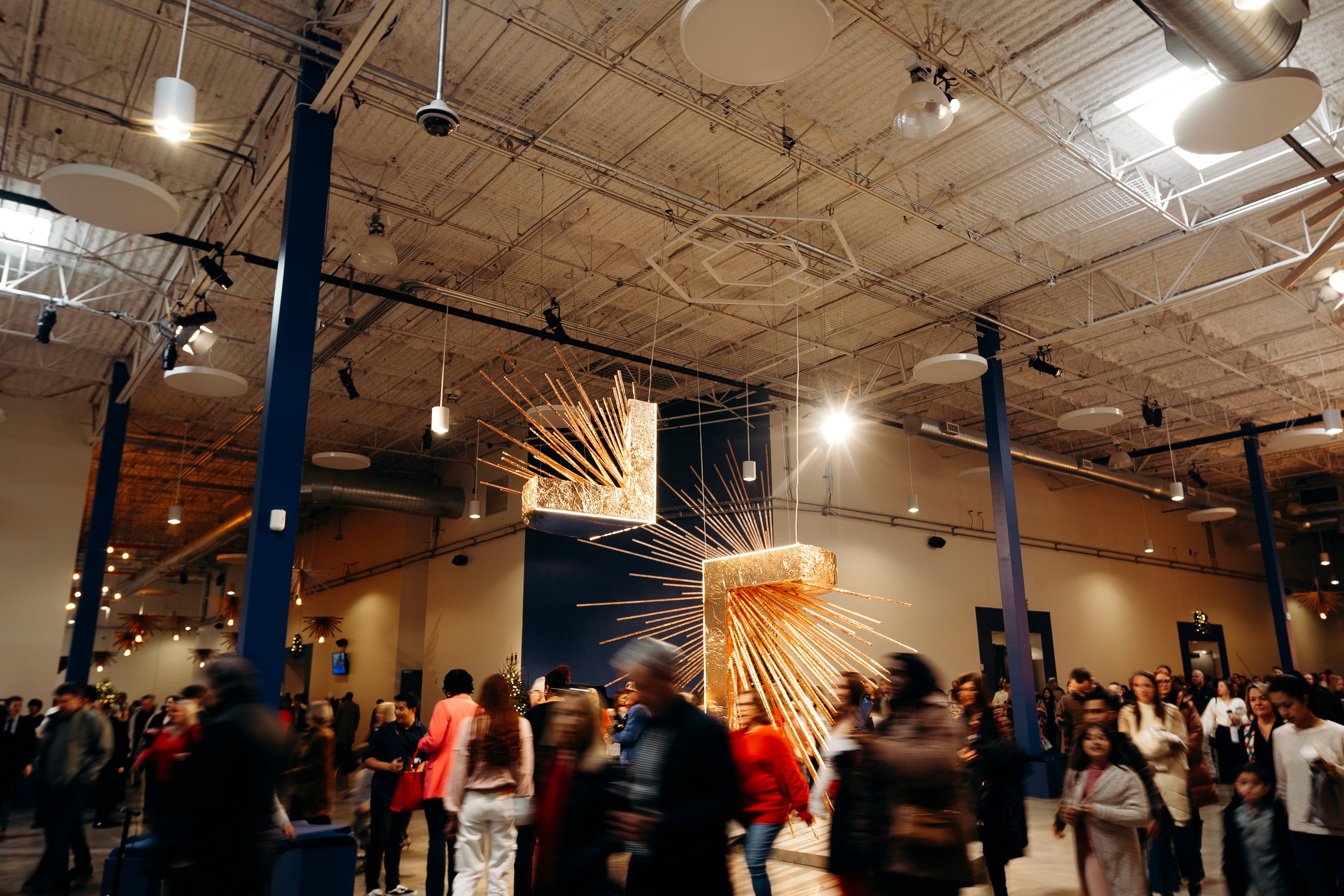 Christmas 2024 was built around the theme Good News of Great Joy, expressed through radiant gold elements, custom-fabricated forms, and immersive light-ray installations. Blue tones from the hero art blended seamlessly into the space, creating an atmosphere inspired by the angels’ announcement of Jesus’ birth — a celebration both reverent and resoundingly hopeful.