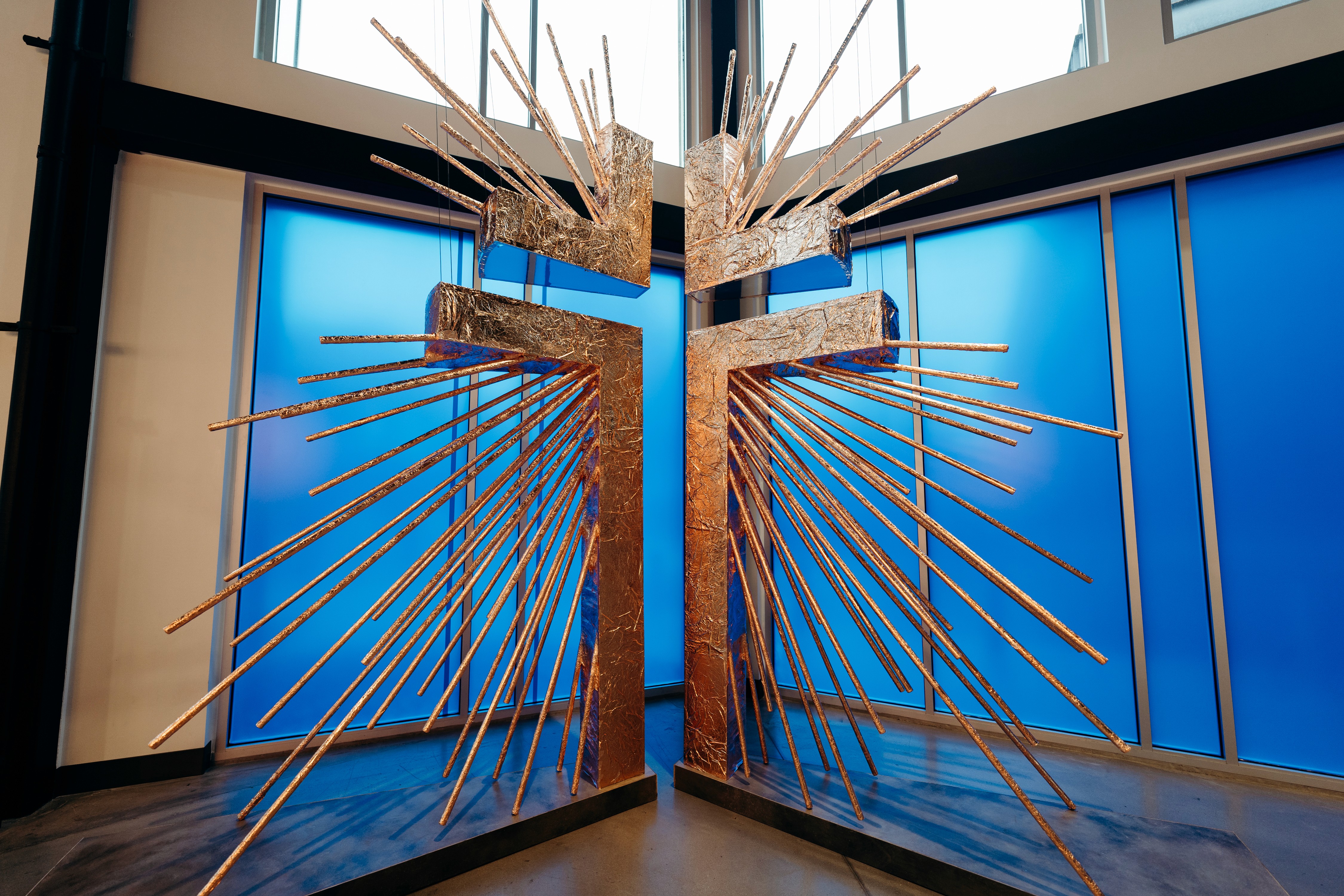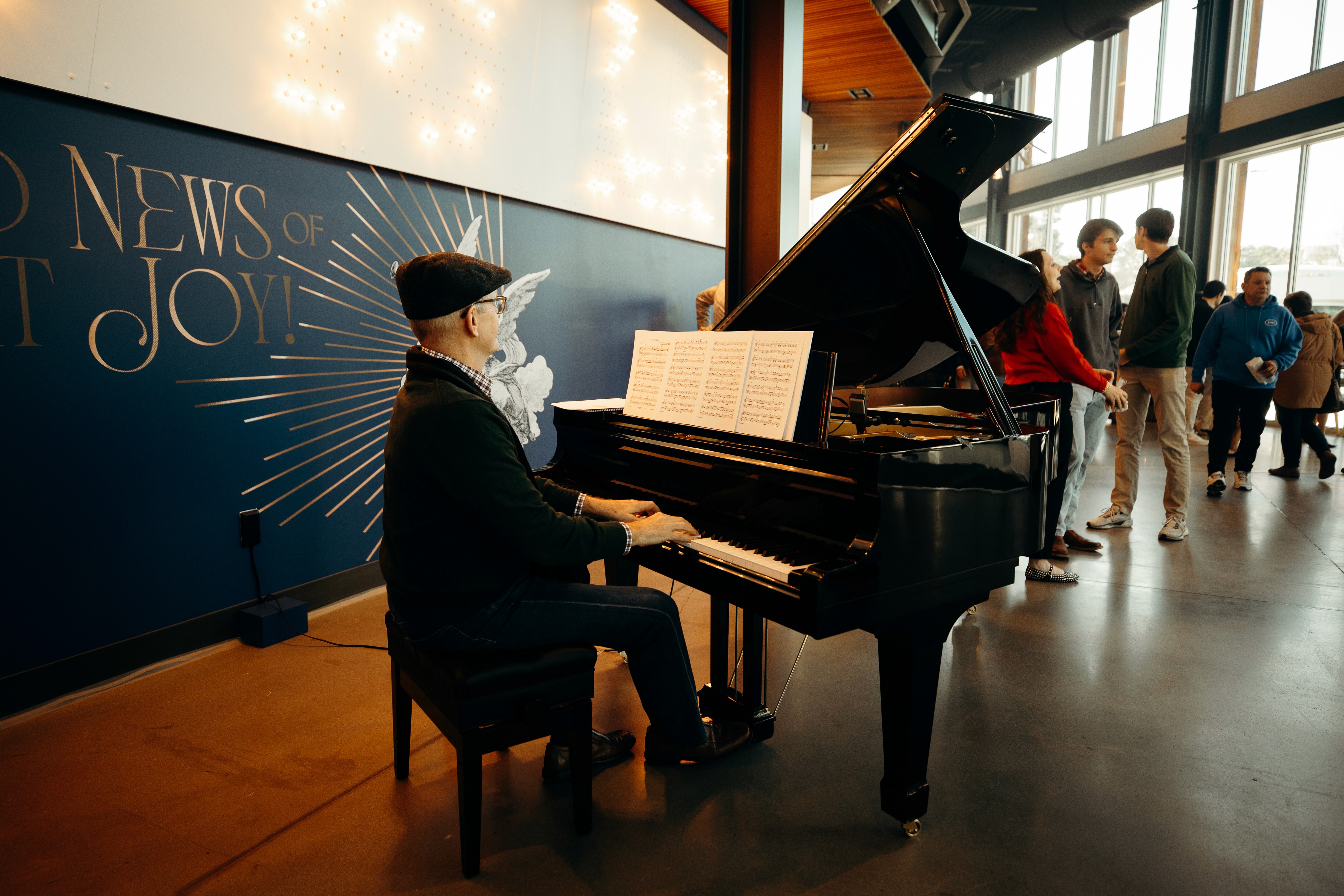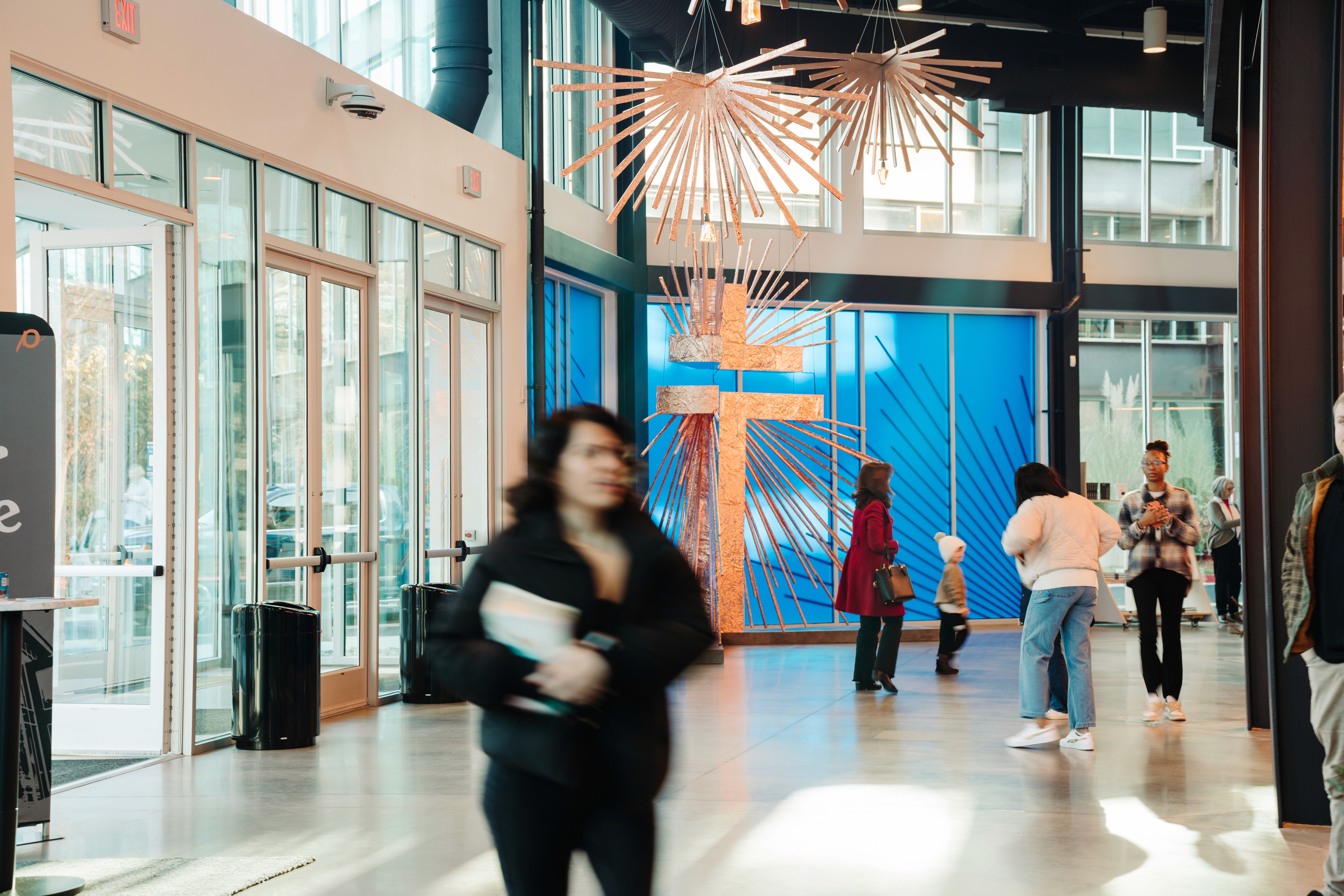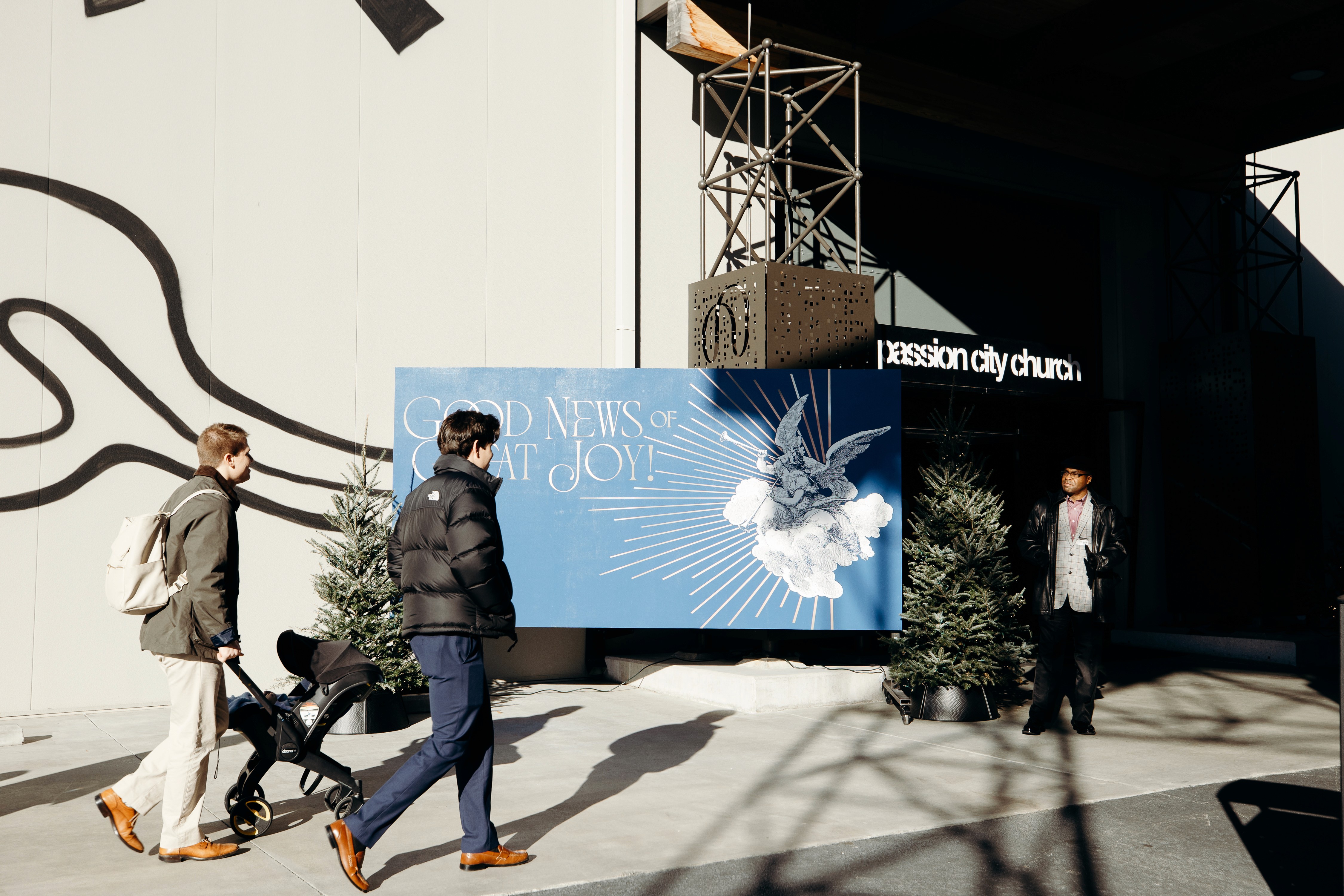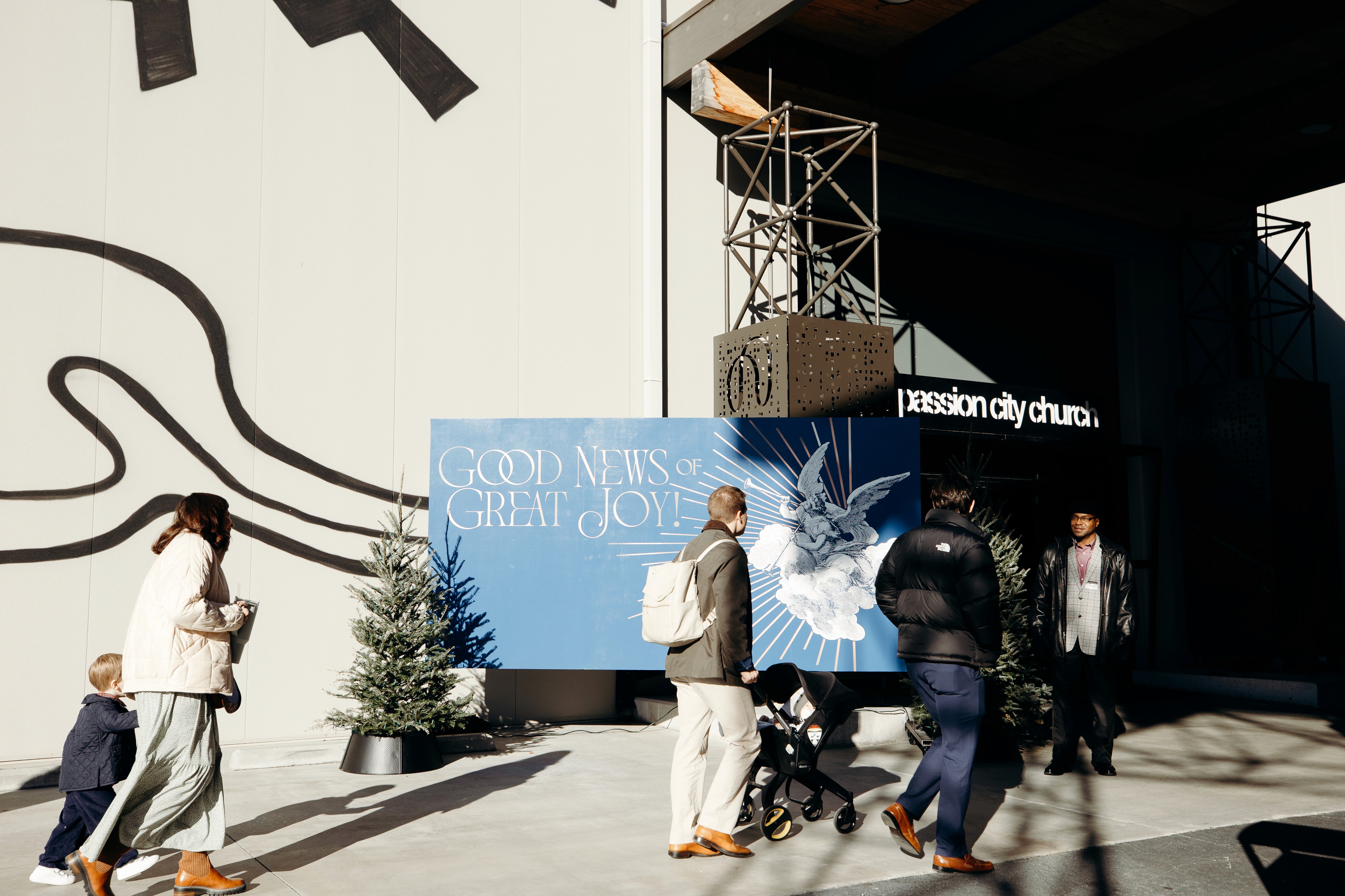 Christmas 2024 was built around the theme Good News of Great Joy, expressed through radiant gold elements, custom-fabricated forms, and immersive light-ray installations. Blue tones from the hero art blended seamlessly into the space, creating an atmosphere inspired by the angels’ announcement of Jesus’ birth — a celebration both reverent and resoundingly hopeful.